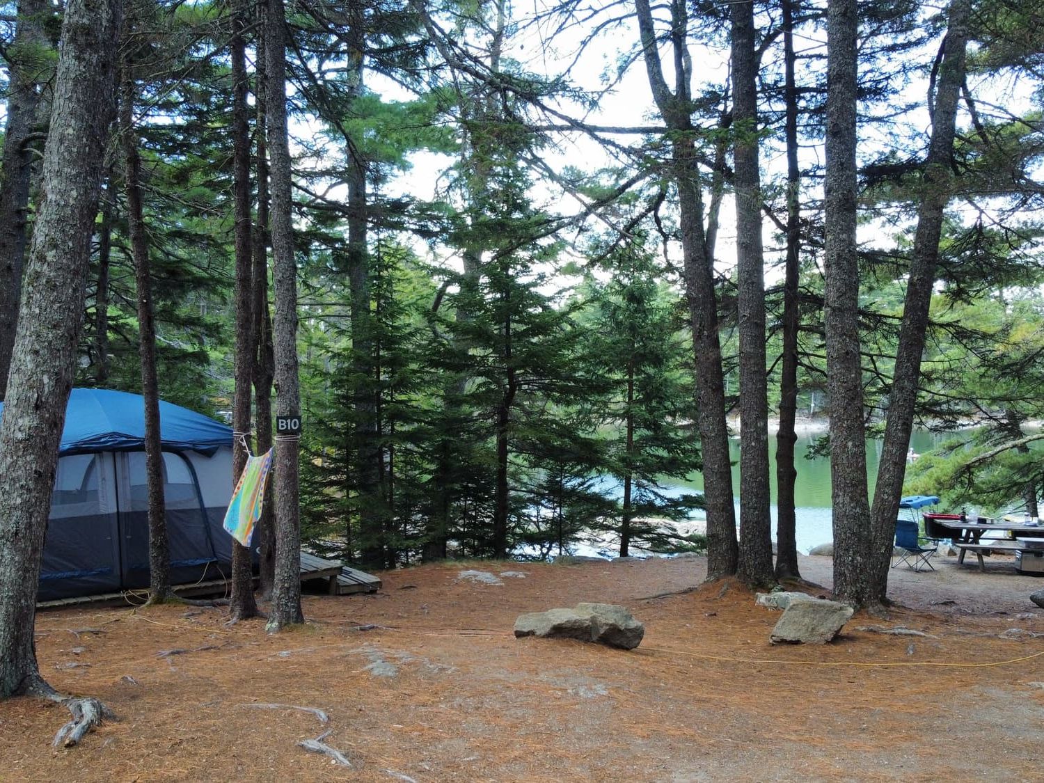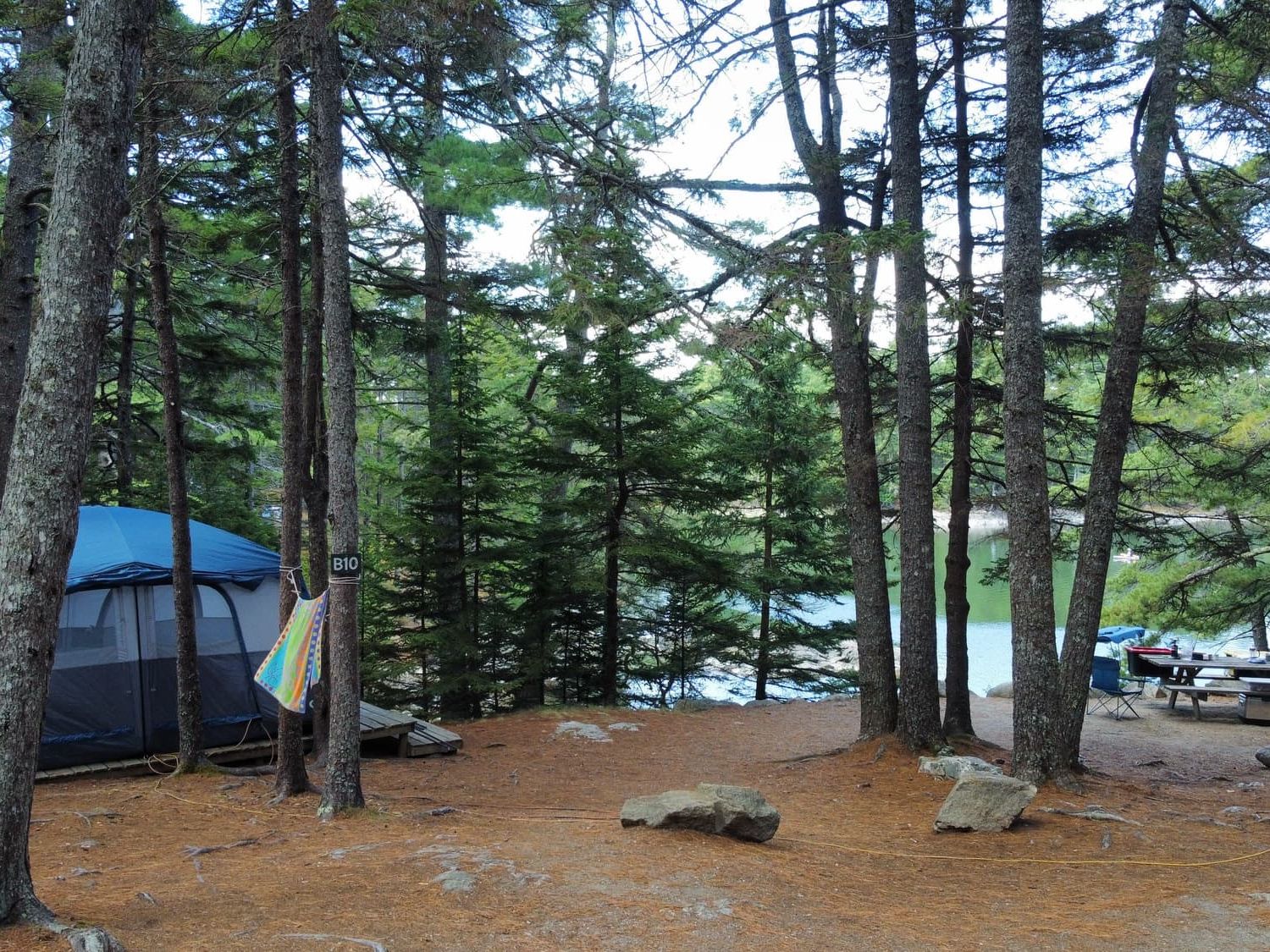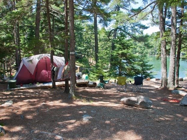 This site is accessed right from your car. The platform is 12' x 16' and the waterfront view faces west. B10 is one of a handful of sites on the water that can accommodate small RVs and trailers. Water and 20A electricity is located directly on the site. Your walk to the B restroom is about 30 seconds. Maximum Occupancy: 5 people, maximum of 3 adults per site (21 and older).