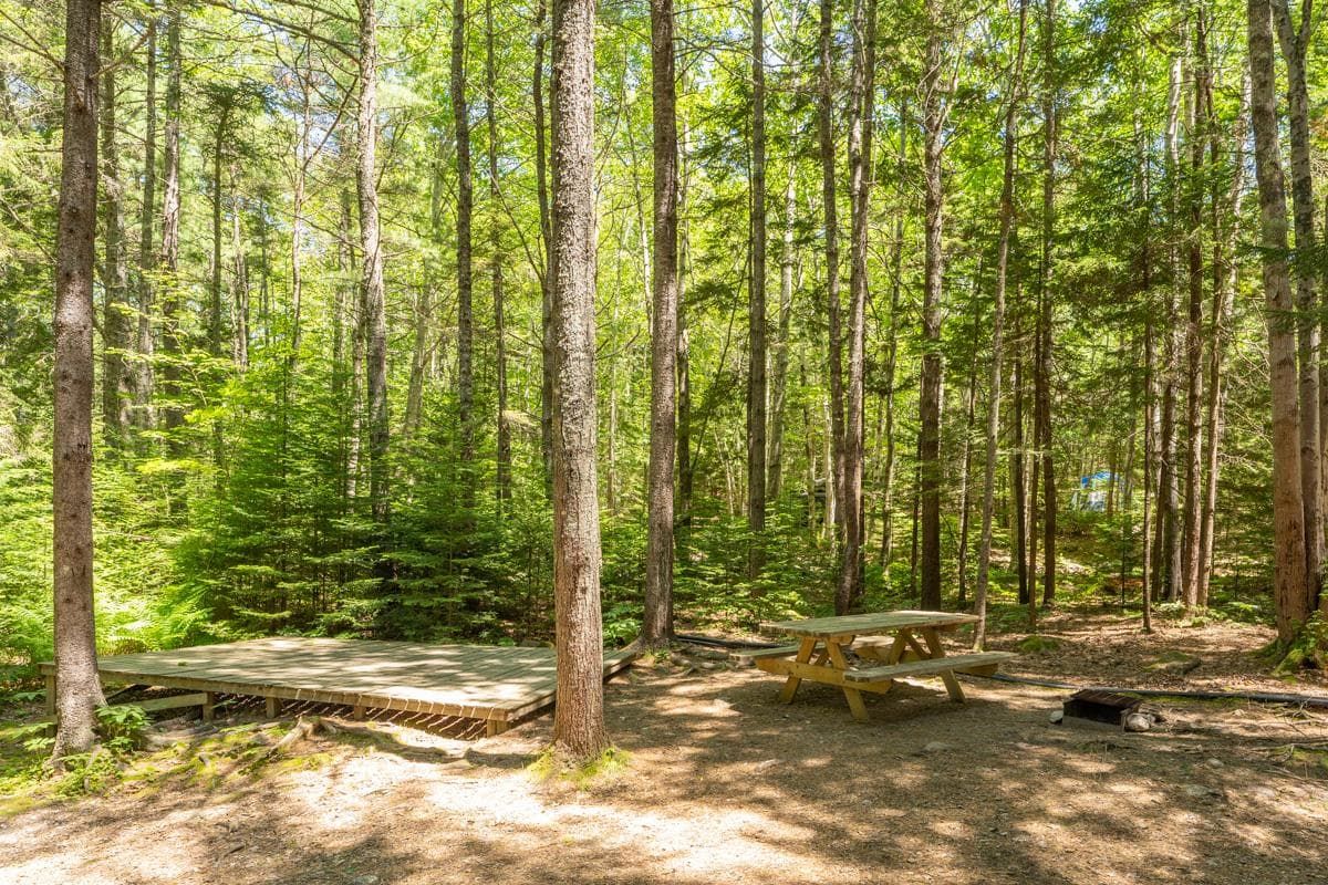 This site is accessed right from your car. The tent platform is 12' x 16' and your walk to the B or E restroom is about 2 minutes. Maximum Occupancy: 5 people, maximum of 3 adults per site (21 and older).